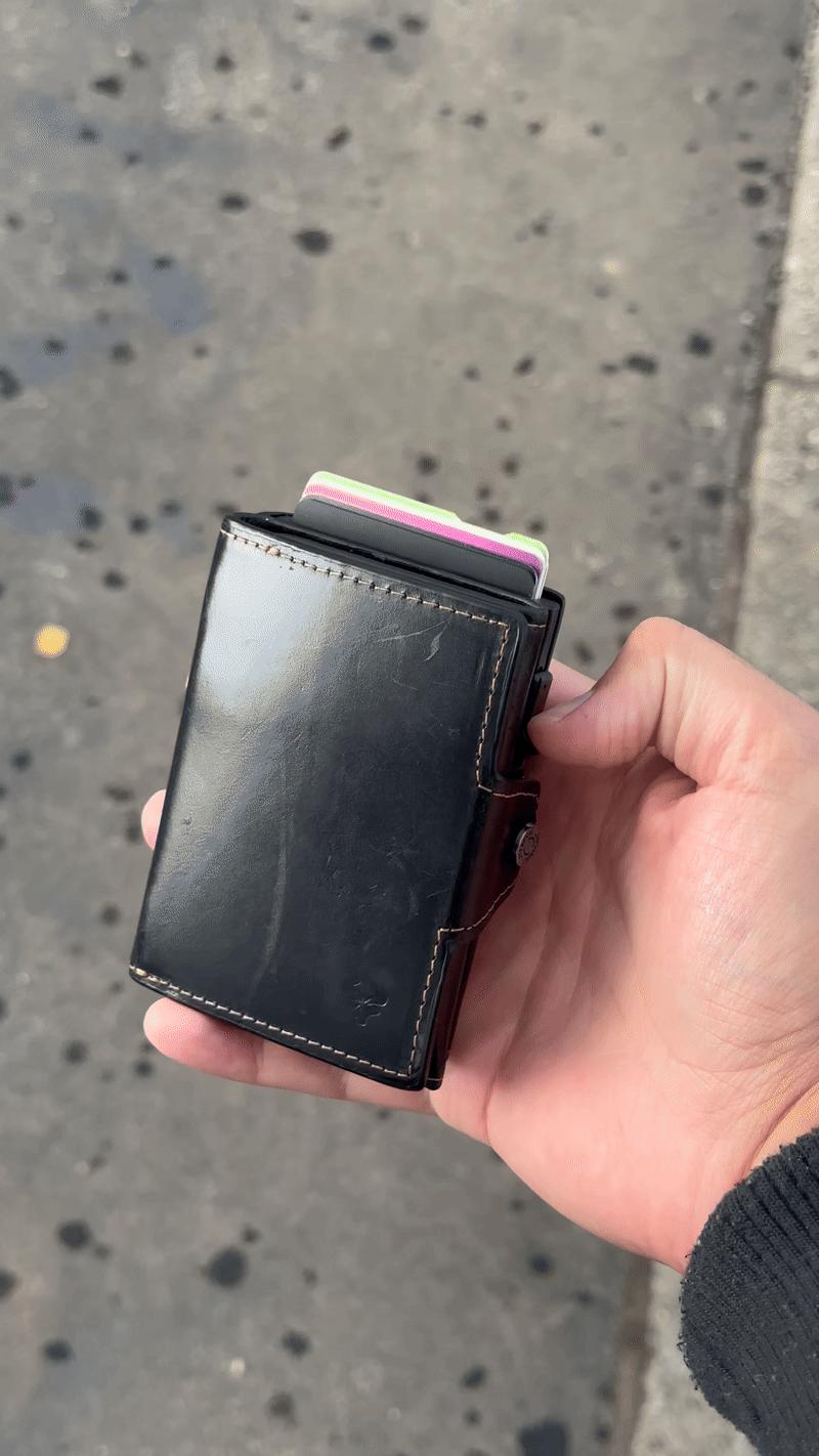Omogućava da jednim pritiskom na dugme kartice iskliznu iz novčanika, uredno posložene i odmah spremne za upotrebu